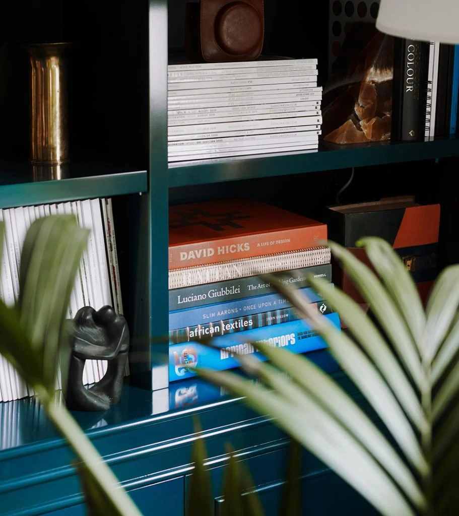 While studies and home offices imply the drudgery of work, a library can be something much more whimsical—and this is reflected in design approaches. “They provide endless opportunities to add a personal touch,” say designers Clémence Pirajean and James Lees of London-based firm Pirajean Lees. Indeed the recent “bookshelf wealth” trend points to the power of expressing oneself through the books and items on home shelving. For a 2023 townhouse project in London’s Marylebone neighborhood, Pirajean Lees included a library as an “inviting, quiet retreat—a relaxing space perfect for a morning coffee or a Sunday read.” Layered with the owner’s collected novels and titles on art, fashion and design are pieces of framed art, sculptural vases, and decorative objects that reflect his life story.
